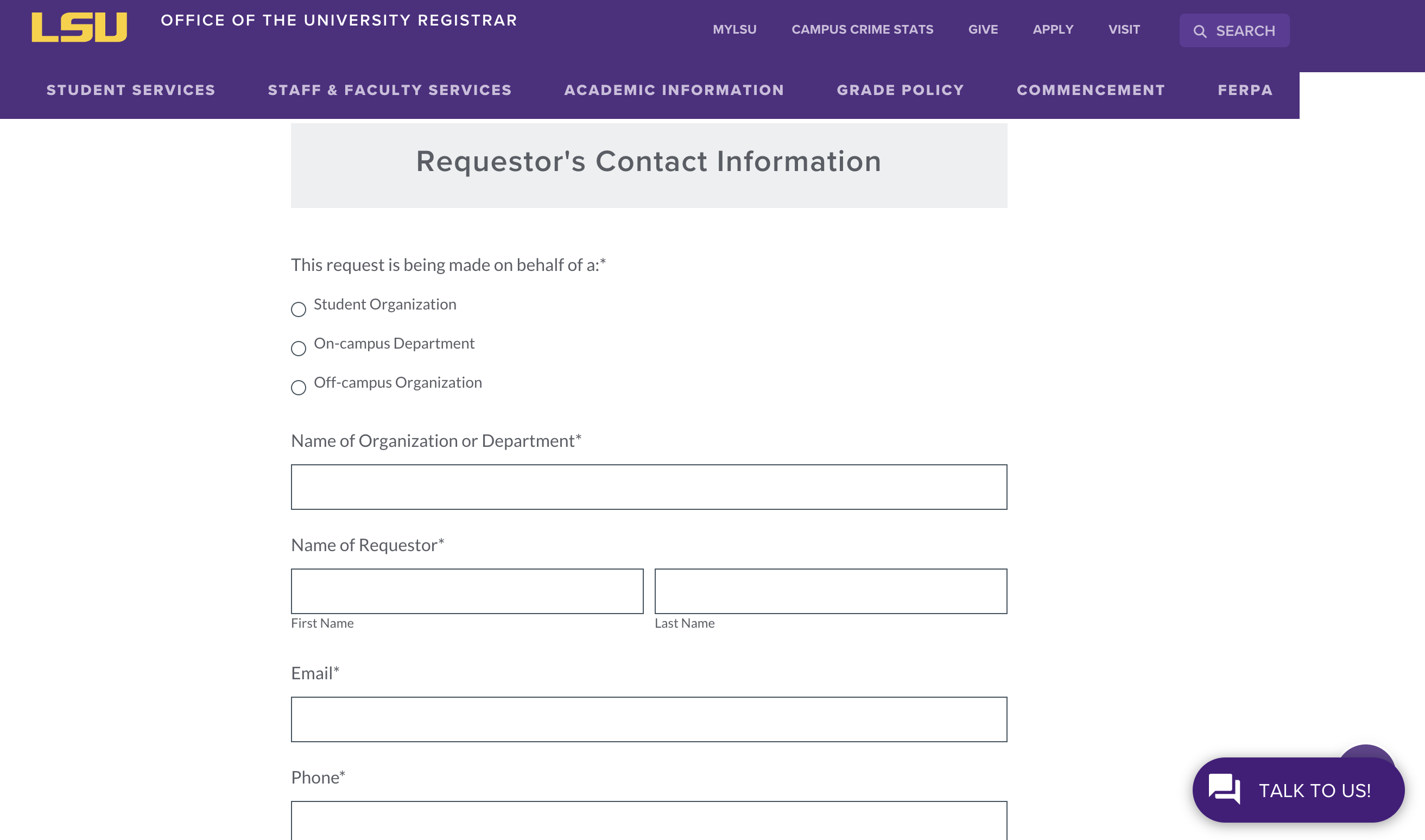 1. Visit the Office of the University Registrar website, then scroll down to Requestor's Contact Information